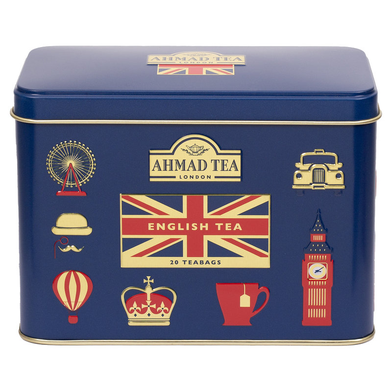English Tea Icons Blue to klasyczny Earl Grey w eleganckiej puszce – czarna herbata z nutą bergamotki, porcjowana w koperty aluminiowe dla zachowania świeżości i aromatu.