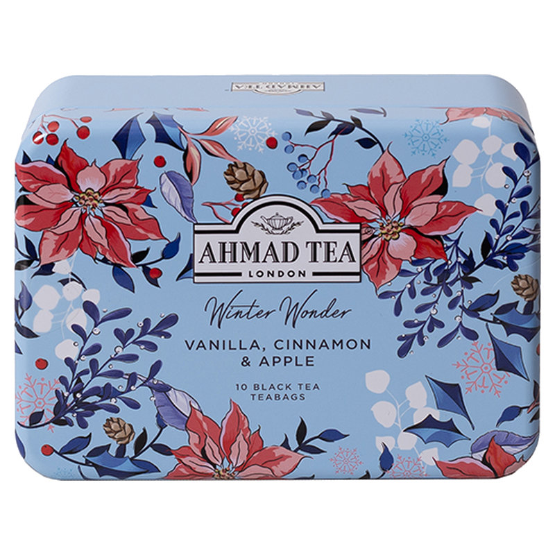 Winter Wonder Vanilla, Cinnamon & Apple to zimowa czarna herbata o kojącym profilu: kremowa wanilia, rozgrzewający cynamon i delikatna nuta jabłka. Torebki pakowane w koperty aluminiowe pomagają zachować świeżość i aromat.